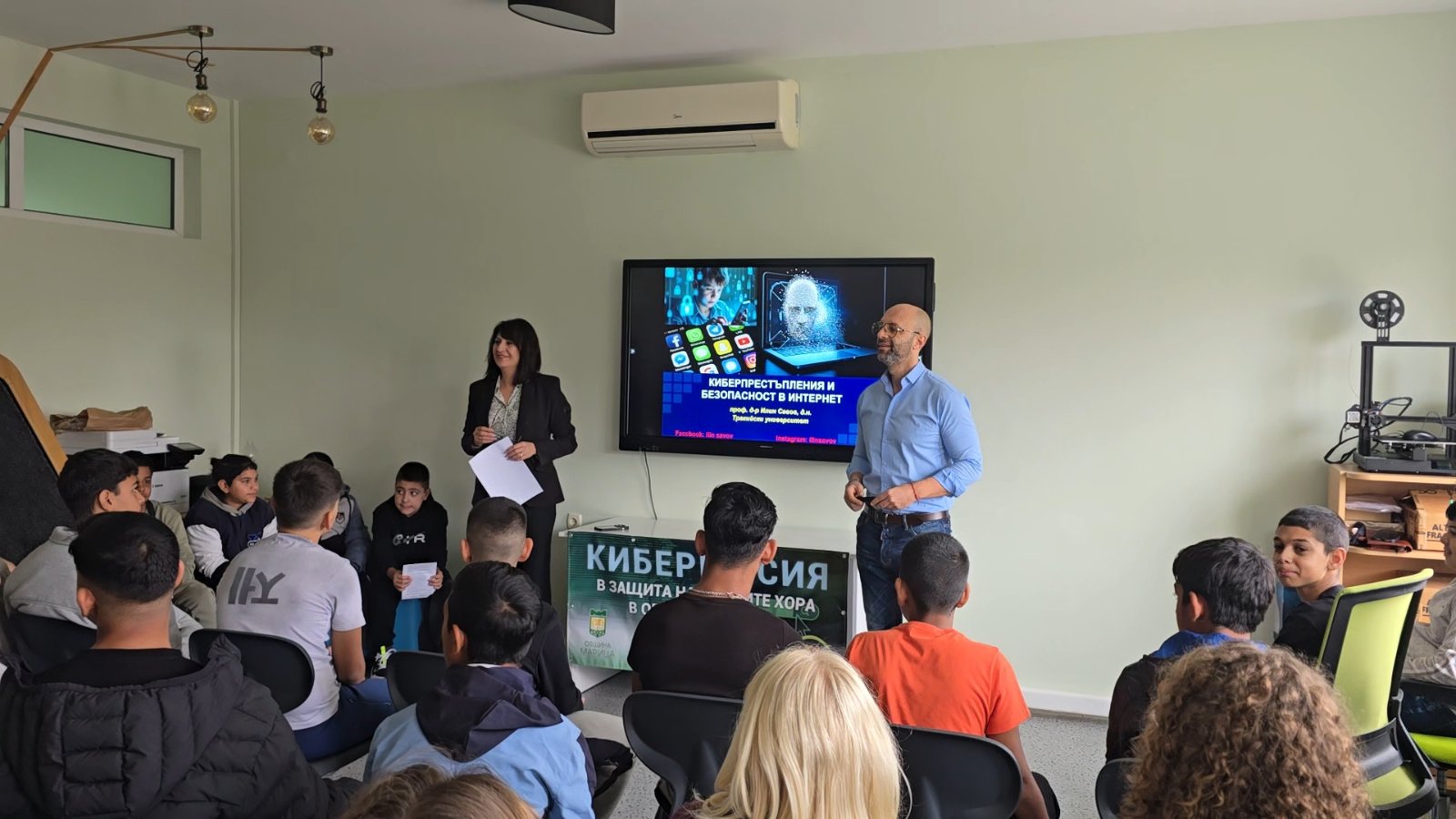 Повече от 200 ученици от СУ „Васил Левски“ в Маноле преминаха през специализираното обучение, водено от международния експерт по киберсигурност и превенция на киберпрестъпления проф. д-р Илин Савов. Акцент в лекцията му бе поставен върху изкуствения интелект. Той обясни, че когато AI технологии попаднат в ръцете на киберпрестъпници, те се превръщат в силно оръжие за създаване на фалшиви идентичности, дълбоки фалшификации (deepfake), манипулиране на емоции и киберизнудване.