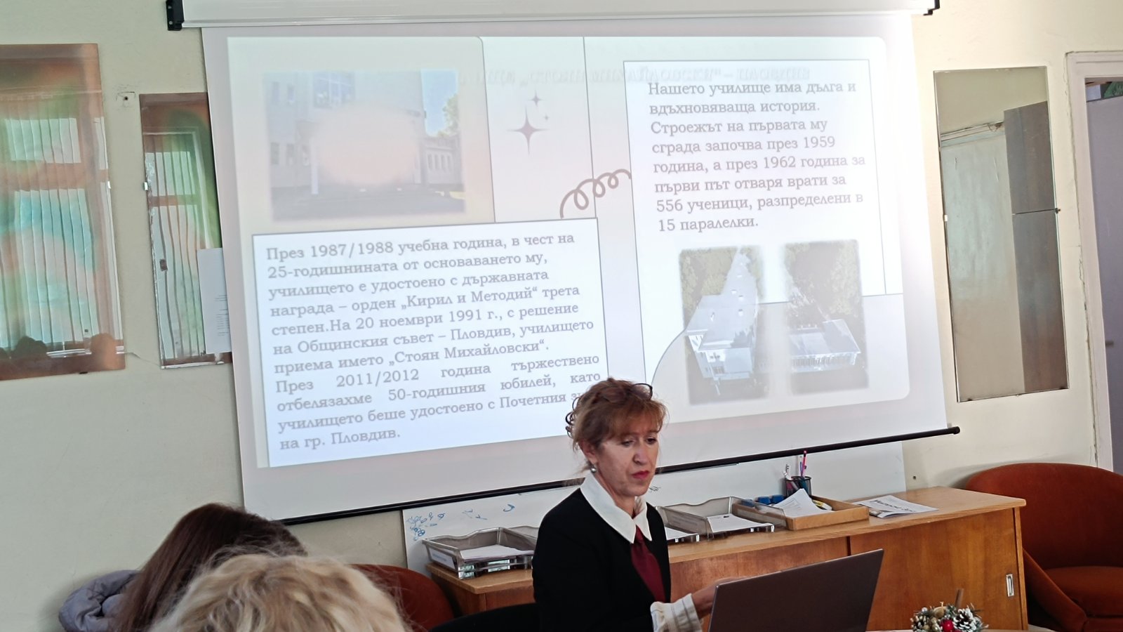 Преди урока областният управител се срещна с екипа, на която директорът представи накратко историята, настоящите успехи и предизвикателствата, пред които е изправено училището в момента.