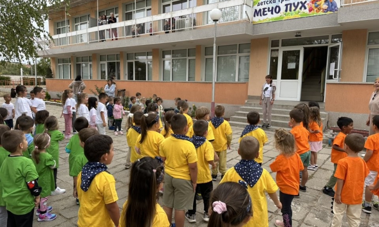 Той рита с другите деца на бежанци в хотел "Коловаре".