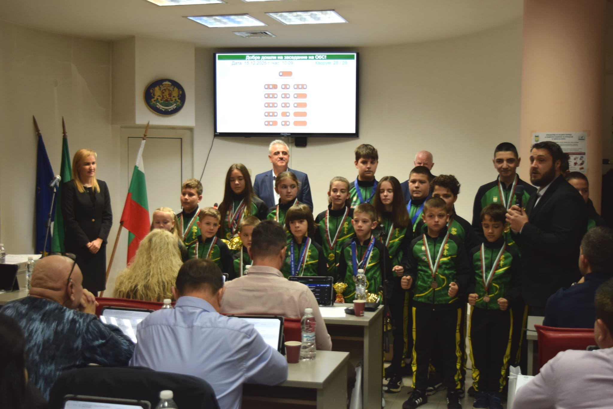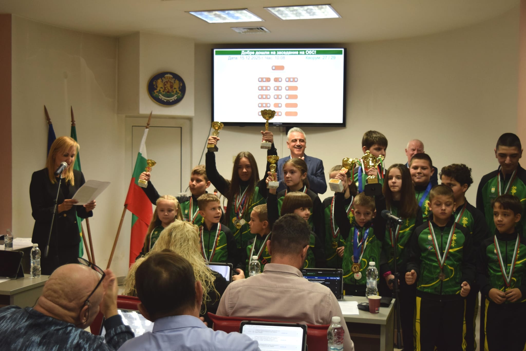 След това каратеките от СКК „Феникс“ – Рогош, спечелили призови места през годината, се представиха пред съветниците със своите медали. Техният треньор сенсей Йордан Зикямов изрази своята благодарност към ръководството на общината за подкрепата им към спорта и развитието на талантите.